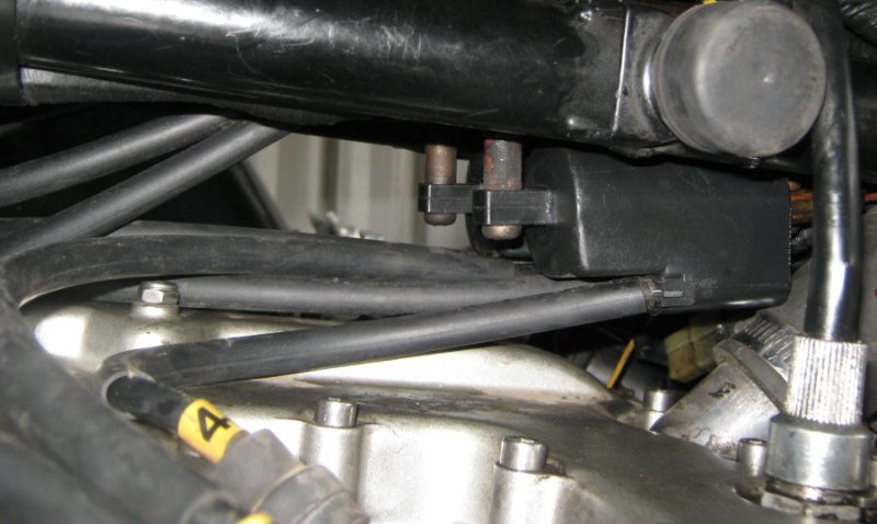 Ok looked at it again, it was still running like shit, decided to check the black wire that goes to the #1 + #6 coil from the igniter connection plug, found more stuff wrong than I did before, regulator seems to be stuffed, plug and connectors bad and the rubber insulation where the wires go into the regulator body soft and melted looking, thank goodness I have a spare, swapped that over and fixed the plug cause the one on the new one was really good. Anyway the wire to the coil is ok, I sort of know how to use a multimeter to check for a broken wire, and after fixing the regulator it seems to run better, checked the charge to the battery and it is also good, charges at revs, still have a bit to look at, stick some insulation over a plug from the igniter as I swapped the whole unit and that one isn't a good one, did a rough compression test and it's not good either but it should still run. I should just give up, but i'm a stubborn old fart, but it might take a while, so anyway i'll stick a few photos here just to show I did do something, even took a shot of the "old/new" coils in place, wish me luck and thanks to all for offering suggestions and tips, keep 'em coming as I need all the help I can get