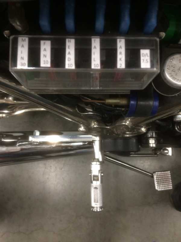 Easy to do. I unsoldered the wires by pair from the stock fuse carrier and crimped 90 degree terminals. No cutting/lengthening of wires was needed. The 6th fuse is used for a driving light relay and is powered directly from the battery. The 30 amp MAIN and 10 amp FAN are "Bussed" together on the stock fuse block to give the fan power when the key is OFF. It wasn't practical to make a Buss-Bar to bridge two fuse blocks internally so I made this required connection in the form of a jumper-splice between the wires on the outside of the fuse-box. The mounting plate is 4mm Phenolic. It mounts in tandem with the Ignitor. Fits comfortably under the side-cover.