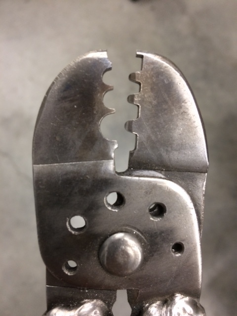 Because the Female terminals are larger then "standard" I stripped the leads back 1/2" and folded the bare lead in half to better fill the crimp cavity. Then crimped gradually and carefully using a common crimping tool. Started with the large gauge crimping channel, then the next smallest and finally the smallest, to finish. This requires flipping the terminal over in the crimping jaws to alternate between using the dimpling pin and the semi-round opening. Simply work the jaws to eventually get a nice round factory-type crimp. Using pliers just crushes the tabs, looks like shit and doesn't grip the copper strands as well. Then soldered. THEN crimped the strain-relief in the same gradual manner to get the two claws wrapped uniformly around the insulation.