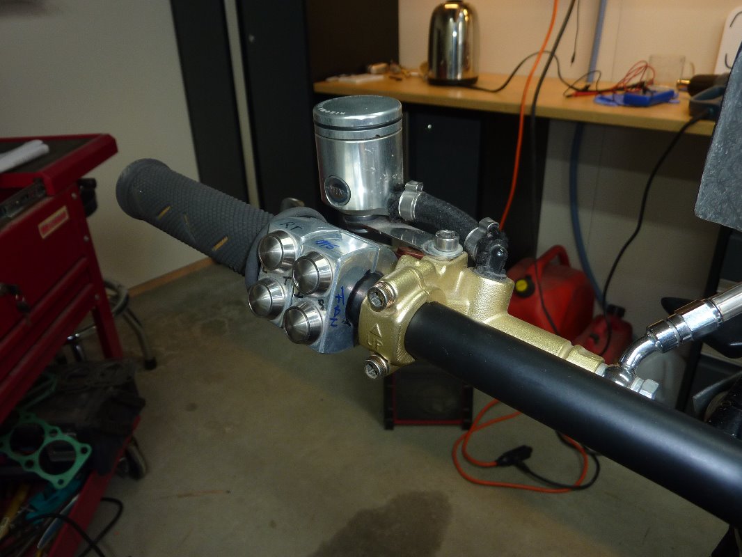 Going even further with the minimum wiring idea, - by using the m-button, which is also hidden in the handle bar, one wire will carry all the triggering on /off signal to the m-unit thru one wire. How is it done - by converting individual pulses from each switch on the handle bar with a unique signature that only turns on that application.