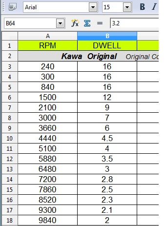 Hi just two cent from me, sometimes back i rebuild the ignition too, in order to tackle off idle problem and while searching for ignition modules i measured the dwell times of the original Kawasaki igniter with oscilloscope. Here the data picture. Maybe someone find it useful.