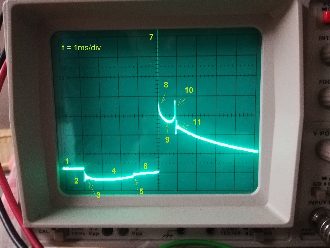 Point 8, oscillation due to R-C properties of the secondary winding.