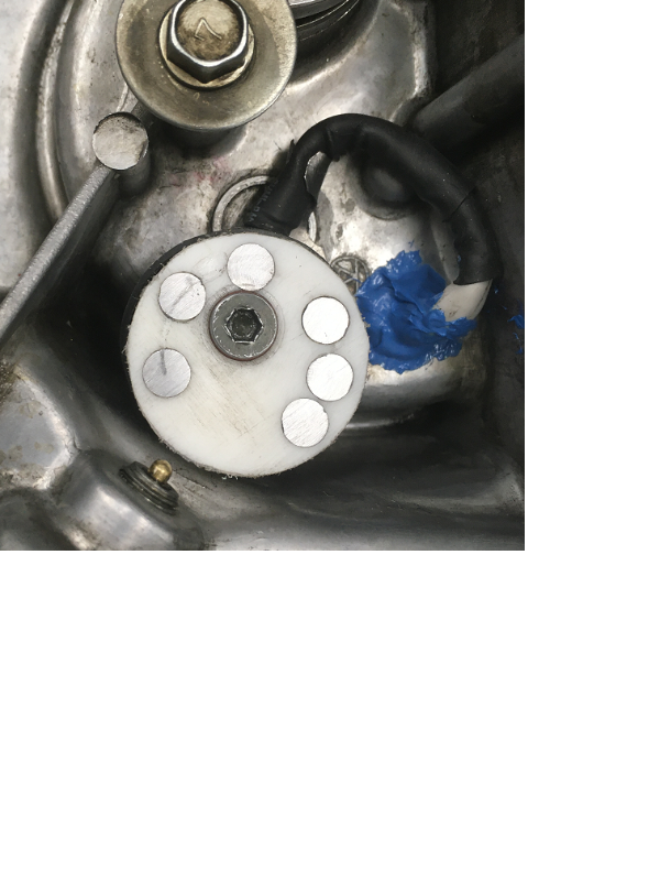 I made the two key components. A spring-loaded contact that mounts to the "Pin Holder" (a completely misleading name) and a multiple contact plate (a stator) that's mounted to the inside of the shifter cover.