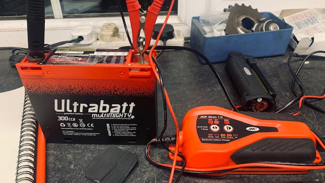 I have charged the battery up to whatever the charger says is OK (presumably around 14.2-14.5V) and will reconnect it. Then switch all the lights off and rev up high (over 4000rpm) and see if I can see a voltage change. Hopefully there will be one.