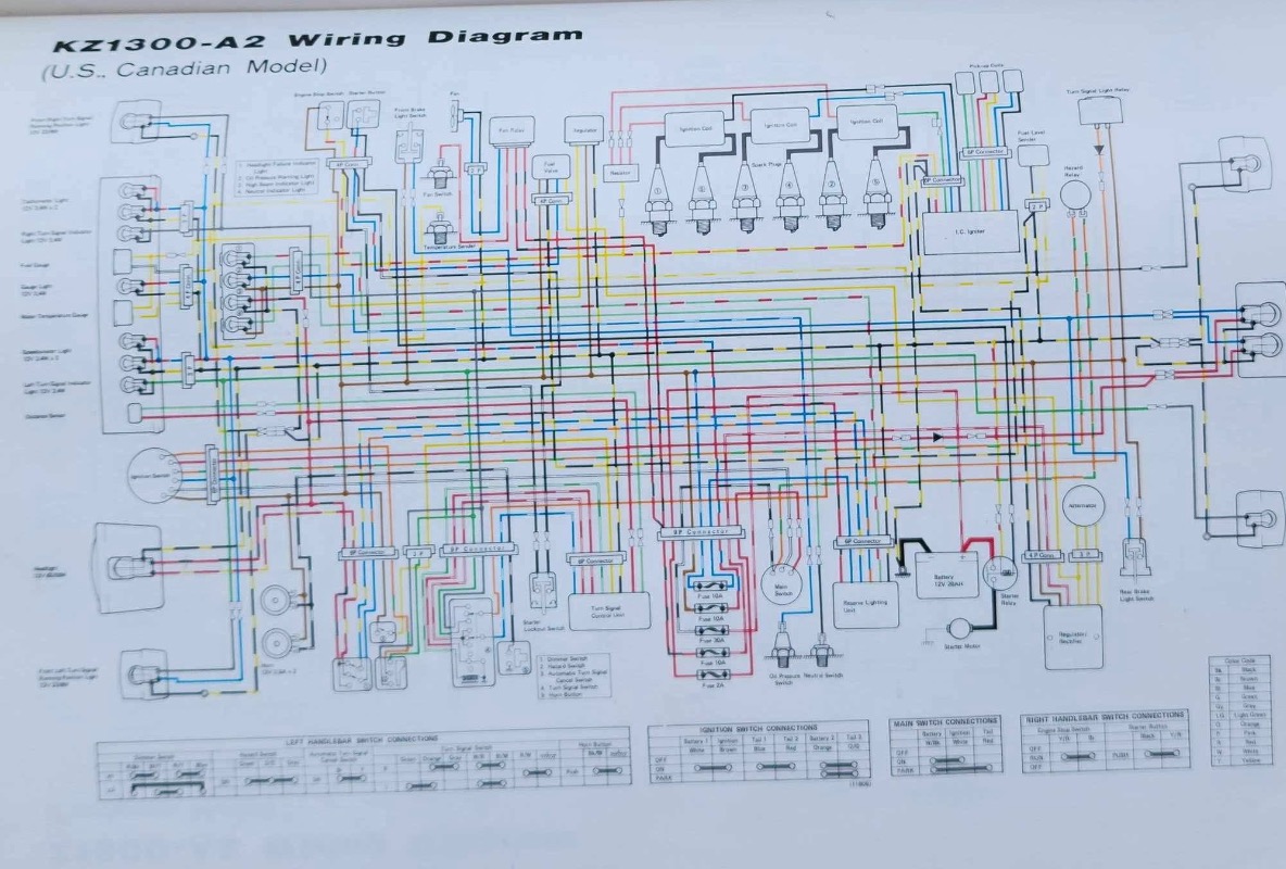 I have two 1979 Kz1300's. Both are charging battery fine. I would like a simple option to switch off the headlight when working on the bike and when starting. I bought a push button switch with an indicator light integratated. When on it glows blue.Where would this three wire switch go to interrupt the ignition switch on position and prevent the headlight from burning.I would want it blue light on with the key on and also with the bike running. It should be dark when the head light is not burning. But switching it to dark should not cause the ignition to switch off.Help is greatly appreciated.