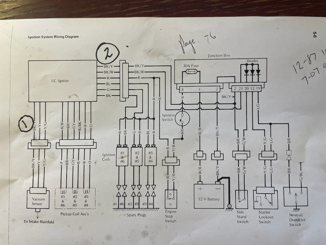 I don't know if you follow the site on a regular basis. I often mention on electrical topics that the best tool you can make for yourself is to take an electronic copy of the wiring diagram, ( in your case page 37 of the manual) and go to your local print shop and have them blow it up to A2 paper size ( 17" x 24") and print off a color copy. Then have them laminate it (plastic coat) so you can mark it up with a white board marker. When you 're tracing out wiring on your bike, you can mark up the drawing at the same time. When finished your wiring troubleshooting, wipe the diagram clean with paper towel and hang it up as art work in your shop. Best tool I ever made and others on the site have done so as well.