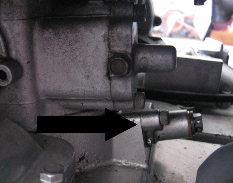 You've got it backwards Globemaster. The bottom one, which is also in the middle of the engine is the camshaft chain tensioner. The smaller one on the left side of the engine and slightly higher up on the engine is the timing chain /water pump drive shaft chain tensioner.