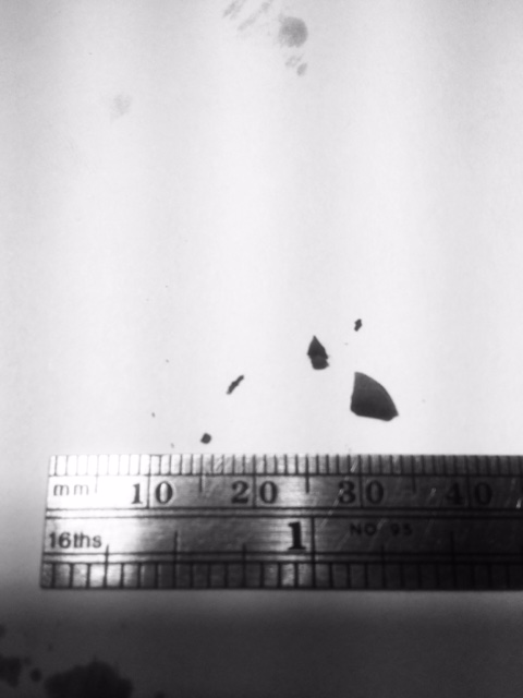 This is what washed out of the screen and into a paint-filter. Several of the tiny pieces were ferrous. The "skinny" length of foreign-material; I think is gasket material. The other