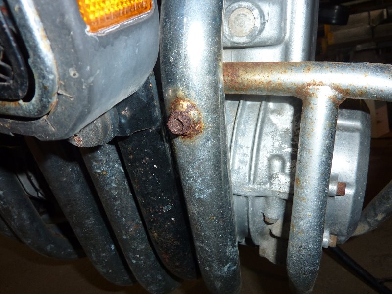 Another strange piece on this bike is the header pipes- with the "fittings " for the exhaust sensor for a fuel injected engines. How did they ever get on a bike like this , with its very low engine number is rather curious.