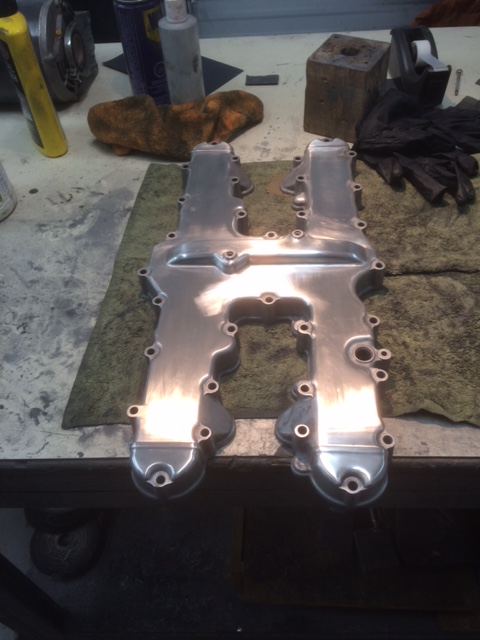 I now have the entire top of the cover sanded with 400. The concern about porous areas hasn't reared it's ugly face - those areas have sanded out - so the end goal to polish it is still a GO. The top-side has been easy so far, being flat. I found a small block of rubber (an axle-snubber) that worked well to flat-sand. Found it worked only with water. The sand paper backing stuck to the rubber-block, unlike with WD40. I also found that water kept the working side of the paper, cleaner (self-cleaning), allowing more use from it. On these larger surfaces the WD would clog up quickly. I'm using a spray-bottle of water with a couple of drops of detergent to rinse the cover and paper. I've found this far more affective and efficient to keep the slurry in-check and to inspect the progress. A large towel on the bench soaks up the surplus water. Now psyching myself up for the task of dealing with the perimeter and all those curves and bolt-bosses.
