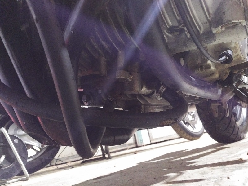 The first pic looks like a failure waiting to happen. Not sure who in their right mind would leave oil hoses hanging like this.... Looks like the bikes goes over carbs from time to time. But in the second photos I see a lot of space! You could fit there a couple of pipes and carry contraband, hahaha