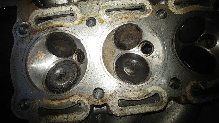 Exhaust valves have thick carbon. Otherwise valves/seats/guides look like they just need cleaning and lapping. Guide play is almost unmeasurable.