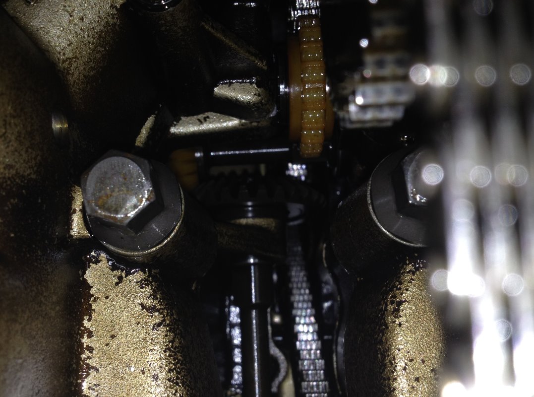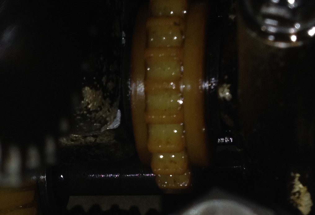 I confirm scotch, my exact thoughts when I saw it. Even looking at the crankcase I thought where those dark brown rusty like areas come from, must be rust inside the case. And the teeth look quite worn, despite the nylon sprocket still usable.