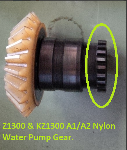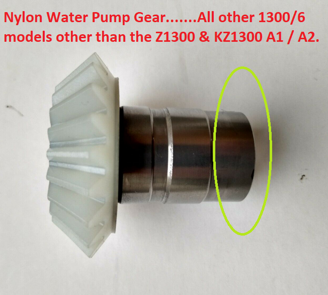 If you do ever need to replace your Nylon Water Pump Gear, it is important you are aware that there are essentially TWO different types of Gear applicable to different 1300/6 models and over the years many owners have bought one thinking it is the correct one for their bike, to find it is incorrect.