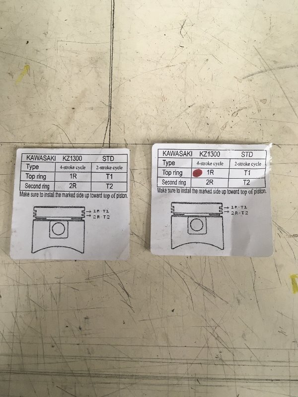 The oil-rings - no concern. It's differentiating between the top two. Both marked with an "R" for this-side-up. One is marked with red.... and this is my problem. Both of these top rings appear to have an identical profile (under magnification). There is no reference as to which position this "red' ring is to be in,