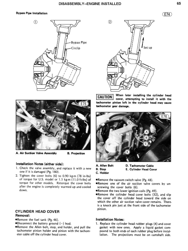Then there's also specific instructions for the removal/installation of the cylinder head cover in the Service Manual page 65-66 which includes a cautionary note.
