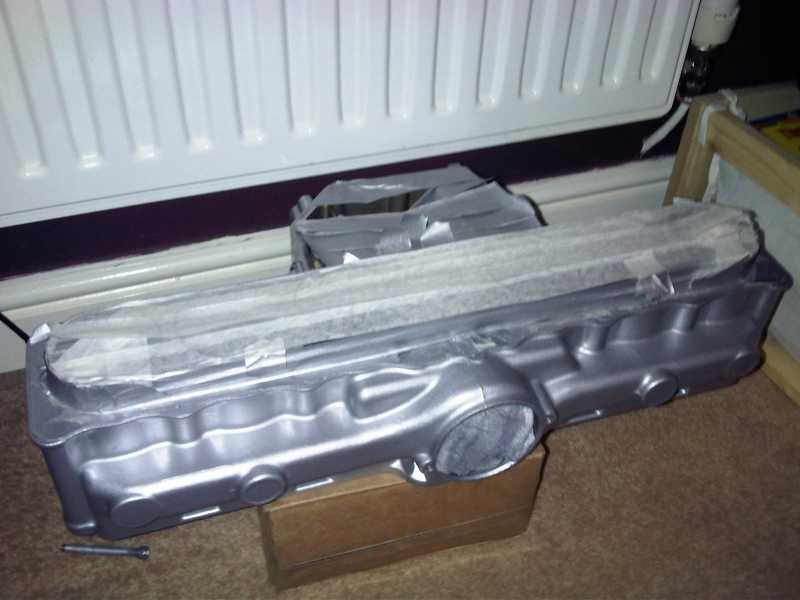 Cylinder block fully prepared now, liners de-glazed & fully cleaned & spray painted in (Silver Smooth Hammerite)