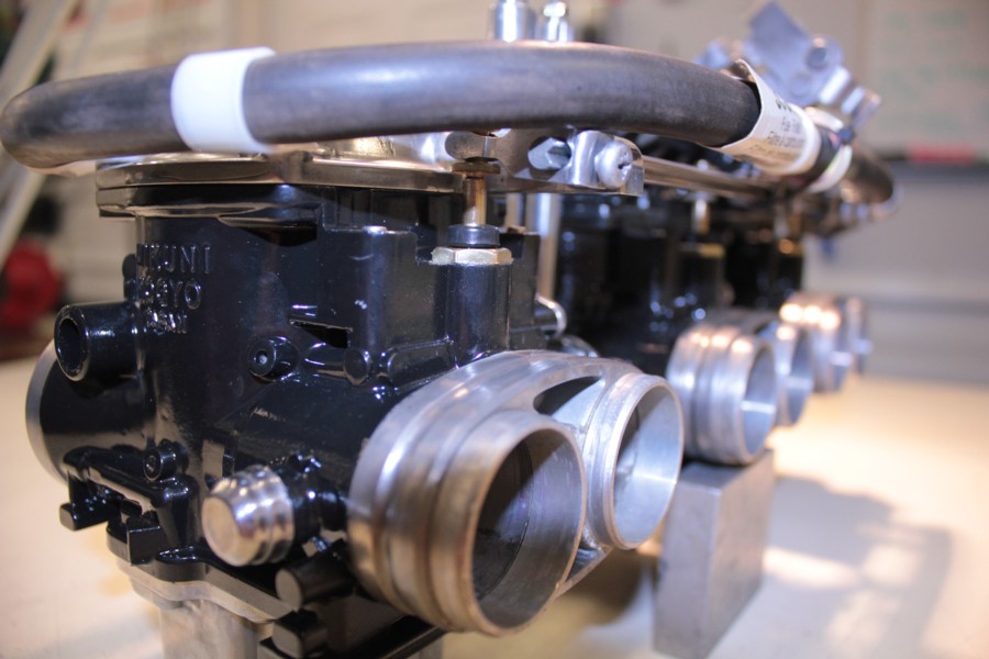 The carbs were meticulously cleaned and reassembled with brass floats (7.5mm fuel level). Float valve-bodies have new O-rings. The stock fuel-tee has been retained and includes 5/16" fuel-line and fuel filter routed "correctly" for proper fuel delivery with no starvation. They were installed on my '80, synchronized and road tested. 135 Kilometers were run on these carbs with Esso Premium fuel. 85 Kilometers were hwy riding. These carbs performed perfectly with quick start, smooth idle, excellent transition and steady throttle at any speed with no surging. Spark-plugs were acceptable light brown color.