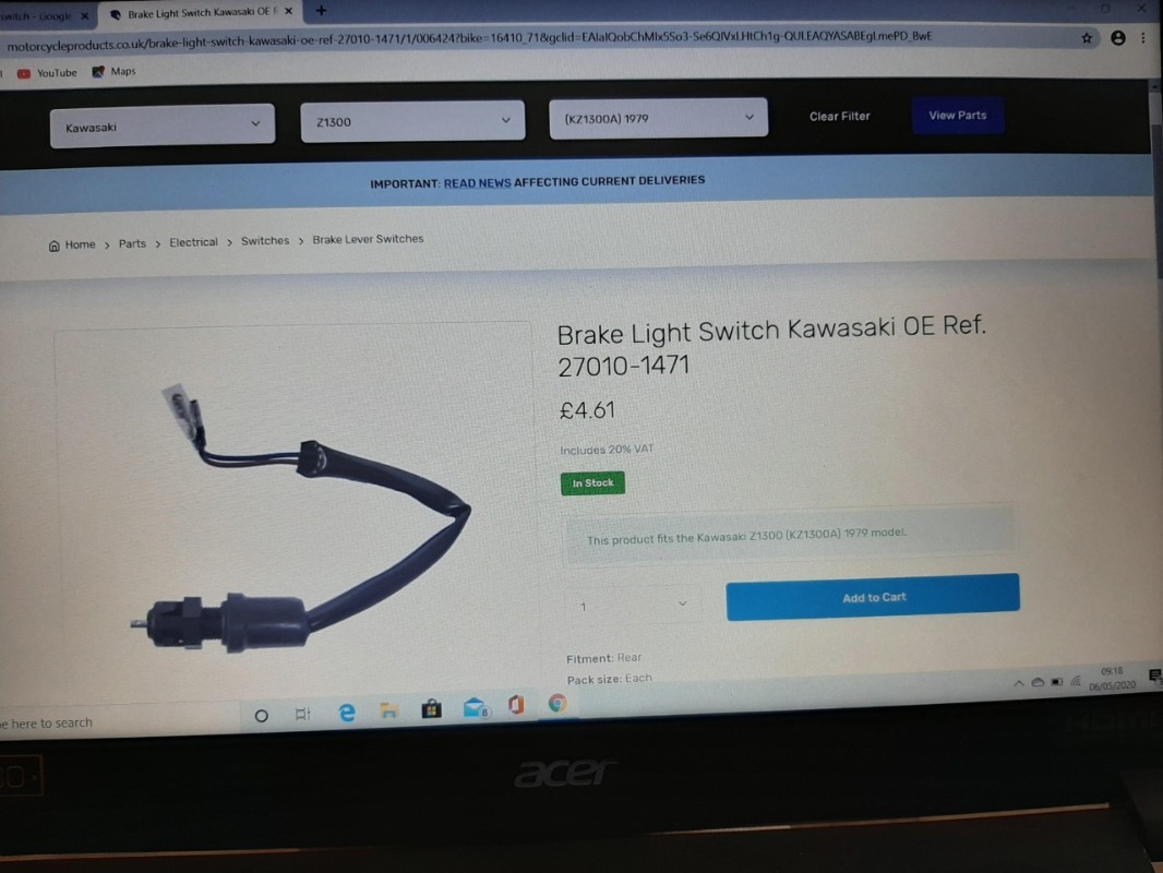 I have just seen that There are two , OEM rear brake light switches on ebay,com [America ] , might be useful for someone . 283866460762. If this is against Forum posting rules , would a Moderator kindly remove , thanks , clive .