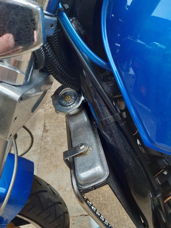 I tried the Gates RC135 cap today & that leaked too as soon as any pressure was built up. I was racking my brain as to what the problem could be, then it suddenly hit me that the pipe from the radiator filler neck to the expansion tank might be blocked ...which it was. D'oh! When pressure builds it's vented into the expansion tank, but if it's got nowhere to go it'll vent from the cap instead of course. The pipe was blocked solid, I managed to blow the obstruction clear & flushed it through a couple of times. I used the Stant 10229 cap that I'd bought previously as that's rated at 13 psi (0.9 bar), the same as the original Kawasaki one. I carried out the coolant system bleeding procedure & all was good this time, no leaks from the cap & it vented the air into the expansion tank as it should, as well as drawing coolant back into the radiator as it all cooled down. So the Stant 10229 is a good alternative radiator for our bikes after all. And fellas, check your expansion tank hose for blockages! Lol.