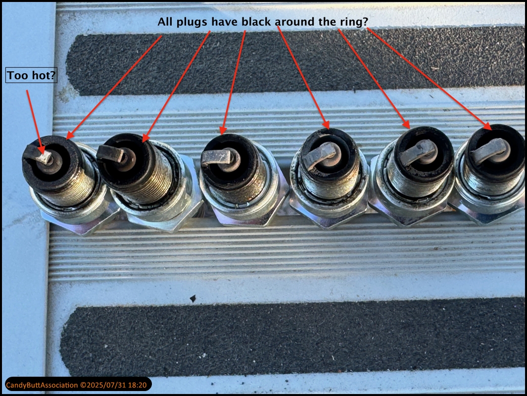Plugs 1&2 show a bit black still. .. but that carb is messed up... some hack, not me, stripped the pilot jet threads then jammed a needle and jet from who knows what.. different threads, length, and I could never get good flow from that circuit using the 'Scotch Tool'. I have 4 spare racks now... and will get back to it when time allows. For now, good enough to ride!