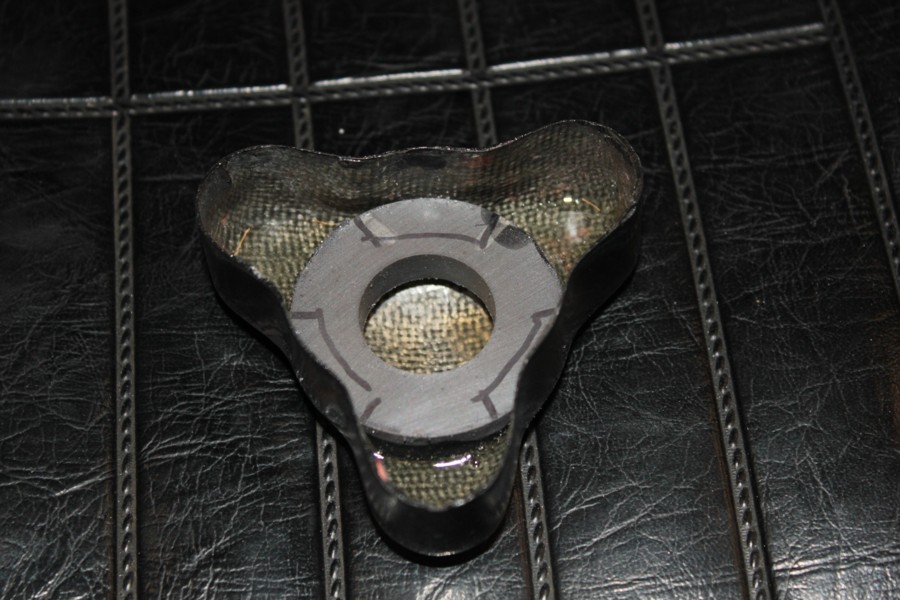 I lost one of the covers years ago so came up with this idea. As there are countless instructions available on fiberglassing the details of this aspect are omitted. The photos should be self explanatory: Imbed an existing cover in plaster. A large socket ballasts the cover to prevent it from floating. When the plaster has set, slip the cover out 1/4" and pour another layer of plaster of paris to the top edge. This will give the mould the depth required for the piece to fully cover the swing-arm pivot hardware. Any of the slurry that might get into the inside of the cover is easily removed when set. 2 layers of 6oz cloth were used. WAX the plaster mould! The magnet must be radiused to allow it to sit deep in the fiberglass cover, is epoxied in place and holds the cover in place very securely. The magnets are available on ebay.