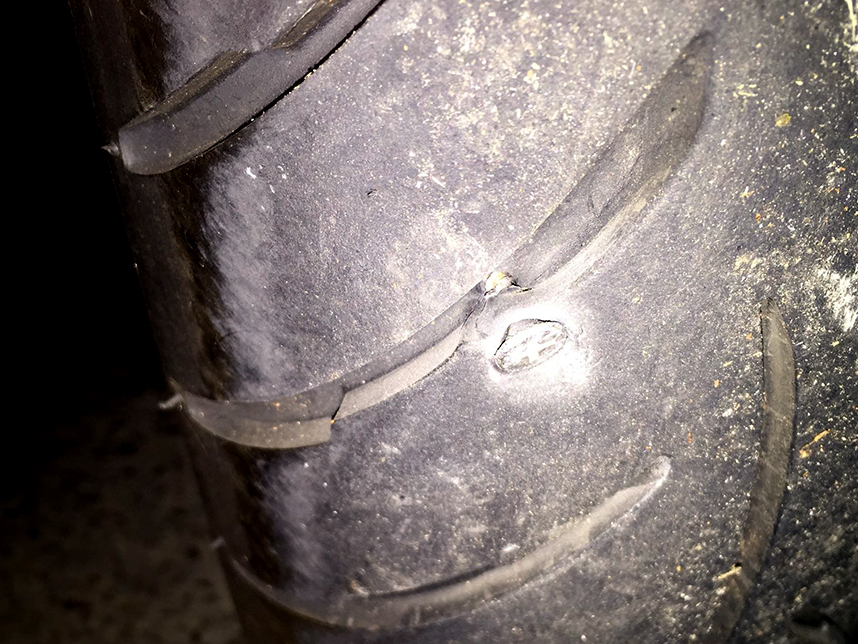 There are many mixed opinions by the 'keyboard experts', especially on facebook, about fixing these or not. This is a brand new tire by the way, I am definitely looking for a plug kit for fixing these. Last one like this was 25 years ago!!!