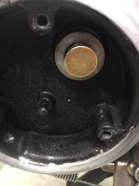 Preferred to do my own lay-out. Cut a pattern using cereal-box card-board. Used a cover to get the 3 holes marked and punched. Backed-out the adjuster so it was flush with the cover recess. Installed the template with 3 bolts and then pressed hard on the template to get an imprint of the slotted end of the adjuster. Didn't particularly care for the center of the Slave misaligning with the center of the adjuster. Did some adjustments to the template which allowed the slave to rotate CCW around the top cover-bolt. Despite the slave now being up against the inside of the housing, the 1.5mm I gained got the "centers" within about 2mm. Did some shaving and shaping of the bolt-head that was conflicting and by counter boring the back of the plate I dealt with that issue. A comment in a similar topic referred to having to shim out with spacers, the bottom two bolts in order to get the plate flush? I simply bevelled the back edge of my plate to match that of the housing - No shims required ! The plate sits recessed about 1.5mm relative to the outside of the housing. I used a hole-saw to get an opening for the slave and finished it to size with some filing. Made my own studs and added a hard-brass button that fits into the end of the adjuster, as a buffer between the center-ball of the slave and the slotted end of the adjuster. (just me being finicky !) I added a 1/8" aluminum spacer to ensure some assembly clearance between the slave and rod-end. The plate is 1/4" ( 6.2mm?)