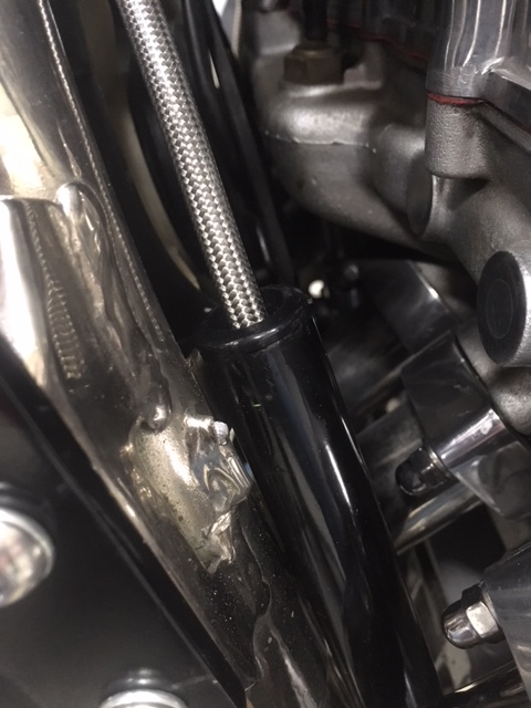 The heat shield was an afterthought..........after I thought, "I smell something" ! Despite using the two cable retainers on the frame I realized too late that turning the bars had bowed the line enough to touch. "Oh, the Humanity"! So.......you've been warned !