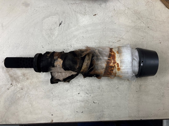 The nonsense continues !! For most of the '23 season I had been striving for "mileage" and could repeatedly achieve 58mpg. This season, starting with a new D.G., I was obviously interested in what these numbers would be. Same route, same 274 kilometers and a maintained 100kph. 50mpg has been the best I can achieve. A discussion with someone more learned in these things resulted in the conclusion that the new muffler had too much back pressure. The baffle was removed easily and this is what came out.