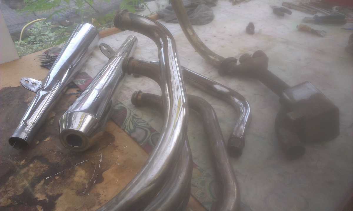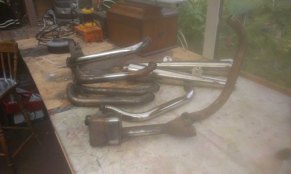 , I've just given a few parts a rub with solvol and am pleased that the chrome is reappearing from under the dirt amd tarnish, its far from mint but totally solid, like I say I'm still unsure what direction I'm going exhaust wise but at least Ive got options, PS couldntget pics of the pipe on the bike due to where it is at the moment.