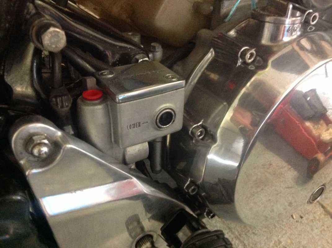 My rear master cylinder was weeping and , trying to find replacement parts and seals proved impossible so, I sent it off to Past Parts and they were able to bore it out, put a srainless steel insert in and fit it with a modern seal kit. All done at a bery reasonable £122. I dread to think what an original would have cost- if you could find one . I ran the master cylinder cap and bolts, the peg hanger and the peg through the polishing wheel and I think it has tidied up that area nicely. I am still debating whether to use the original brake hose, which seems ok, or to put one of those coloured , modern ones on it.