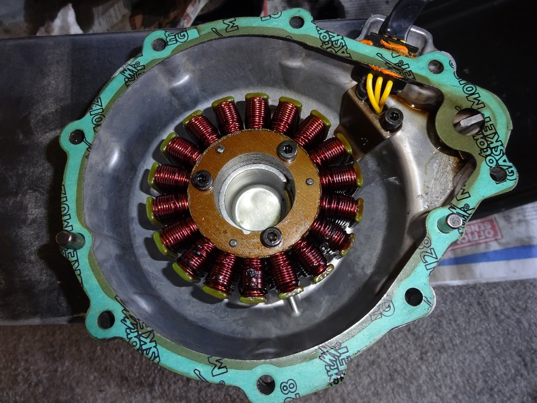 The engine has now covered around 1000 miles since fitting the Shindengen SH775 series regulator and it was good to see that the stator is free from the usual oil pyrolysis that I have observed with all previous stators (see first stator pic) and “shunt” type regulators. I would highly recommend this mod for anyone that has charging/stator issues