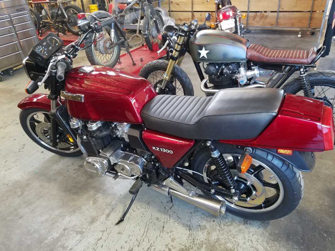 1968 BSA Shooting Star, 1970 BSA 650 Lightning, 1974 Kawasaki W3, 1976 KZ900 A4, 1979 KZ750 B4, 1979 KZ750 B4 Trike, 1981 KZ1300, 1982 KZ1100 Spectre, 1985 Kawasaki ZN1300, 2000 Honda Valkyrie Tourer, 2009 Yamaha RoadLiner S