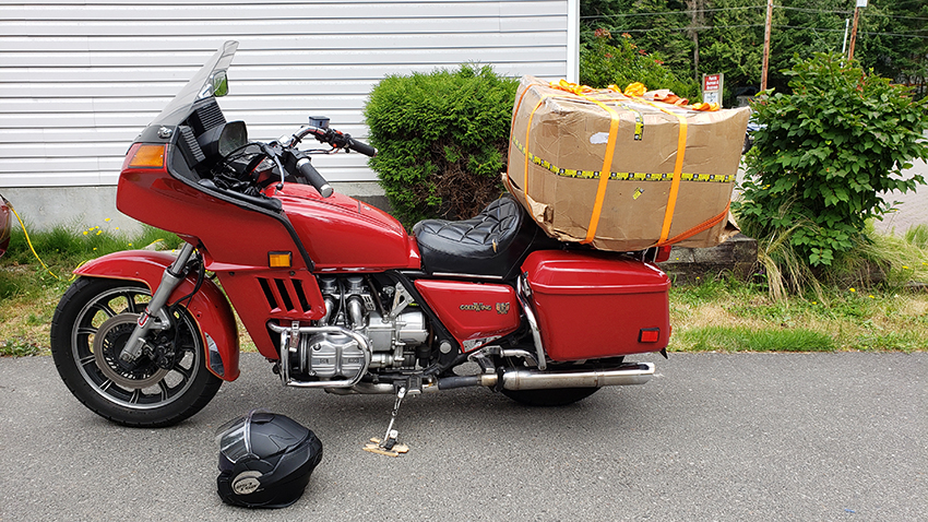 Here, carrying a KZ1300 crankcase. Thank you GL 1100!