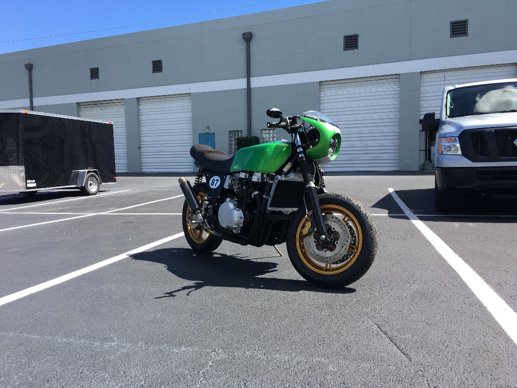 You identified your KZ1300 as a 1980B2. Unless I'm crazy, and I have been at times, it is actually a 1979A1. The clutch cover is definitely an A1. The fairing is not for a B2. That is the Kawasaki fairing, available from the Kawasaki accessories catalog, and manufactured by Vetter for Kawasaki. It was used on A1 and A2 models.