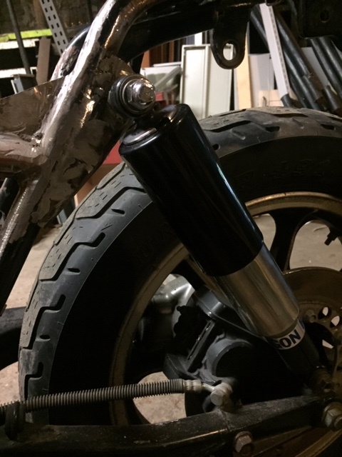 I also ground off part of the ridge on the rear RH swingarm so I can get a fatter rear tyre in. I left a little bit for strength, but about 4mm came off. The biggest difference however was taking the strengthening panel that hoops around the swingarm back by about 1cm.