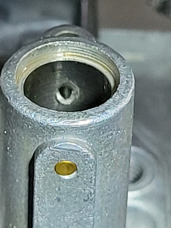 Pic of the #6 pilot fuel supply passage in the top of the tower showing what is a clear passage.