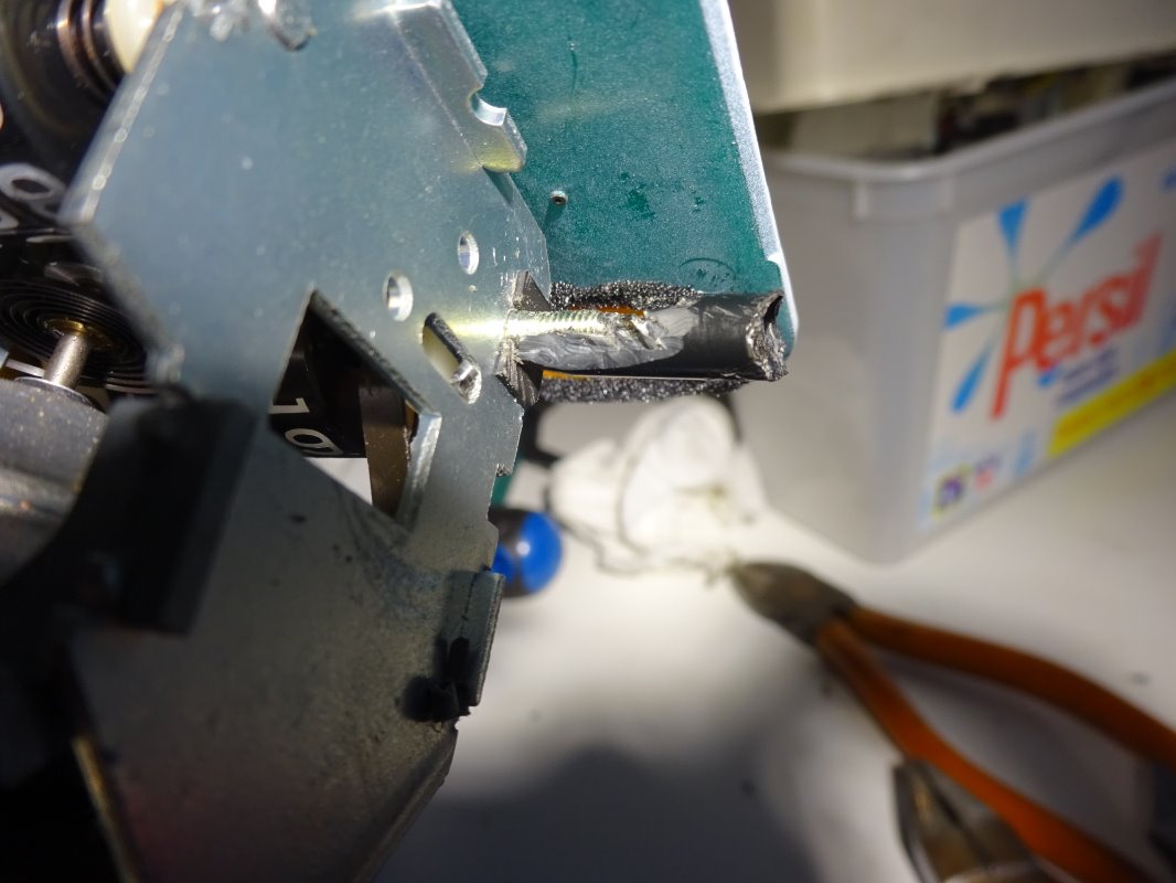 This revealed the root cause of my problems – a previous owner had for some reason decided to glue the reset in place – you can see the remains of some sort of epoxy glue in the picture