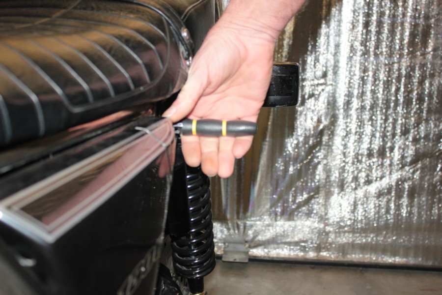 All of this talk about rails and grab-things got me to thinking. This was the result. The stud for the handle was originally designed to have a bolt as a pivot but I didn't care for the bolt-head and it's appearance so it was changed to a steel pin with a low profile head. Not pictured is a small Allen-screw on the bottom of the handle stud, used to retain the pin. The handle was a spindle adapter used for attaching a wire wheel or stone, etc to a motor armature. The rubber grip is from one of those household mops with a sponge-squeeze lever in the mop handle. It was the perfect diameter for threading onto the threads of the former spindle adapter. I had intended on using a spring loaded small ball-bearing to catch detents in order to keep the handle in both the up and closed position but decided it wasn't required. I prefer the handle to close on it's own with gravity and it stays down without any form of latching.