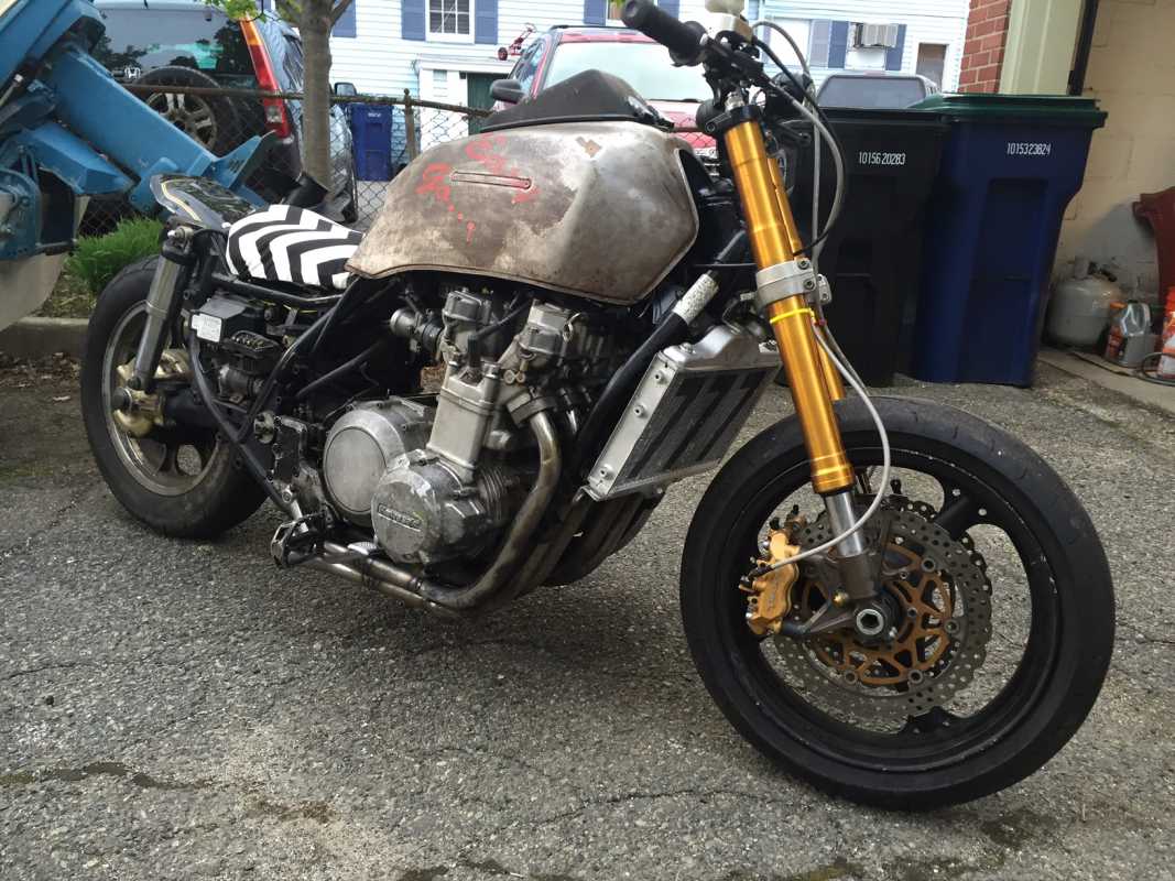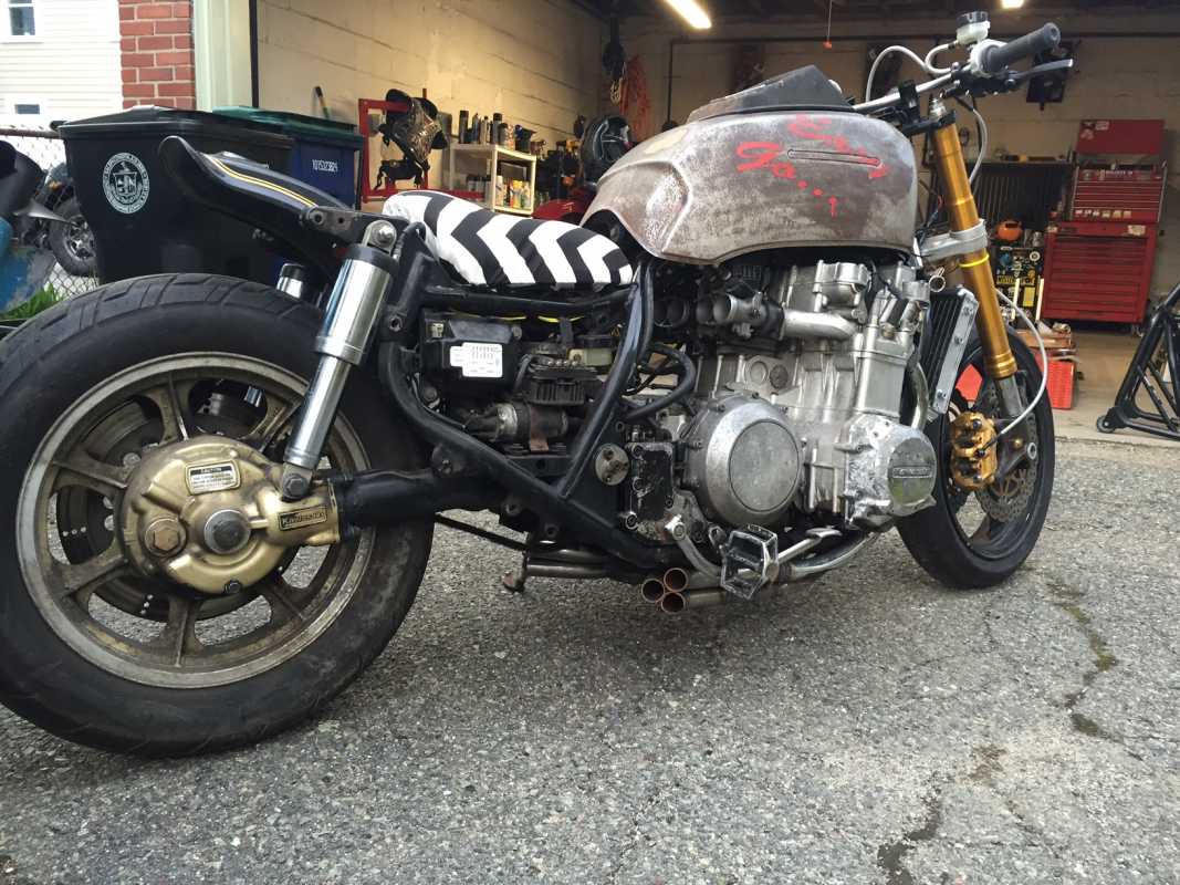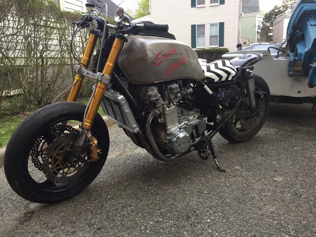 Truthfully, I didn't do as much to the bike as I could have, or normally would have, but time was especially tight with work travel and house projects. I basically stripped everything I could off of the bike and fit a ZX6 front end. I also made an exhaust for it, bent some bars, eliminated as much of the electronics as I could. There's lots of other stuff that goes along with all of that, but that's the major stuff.