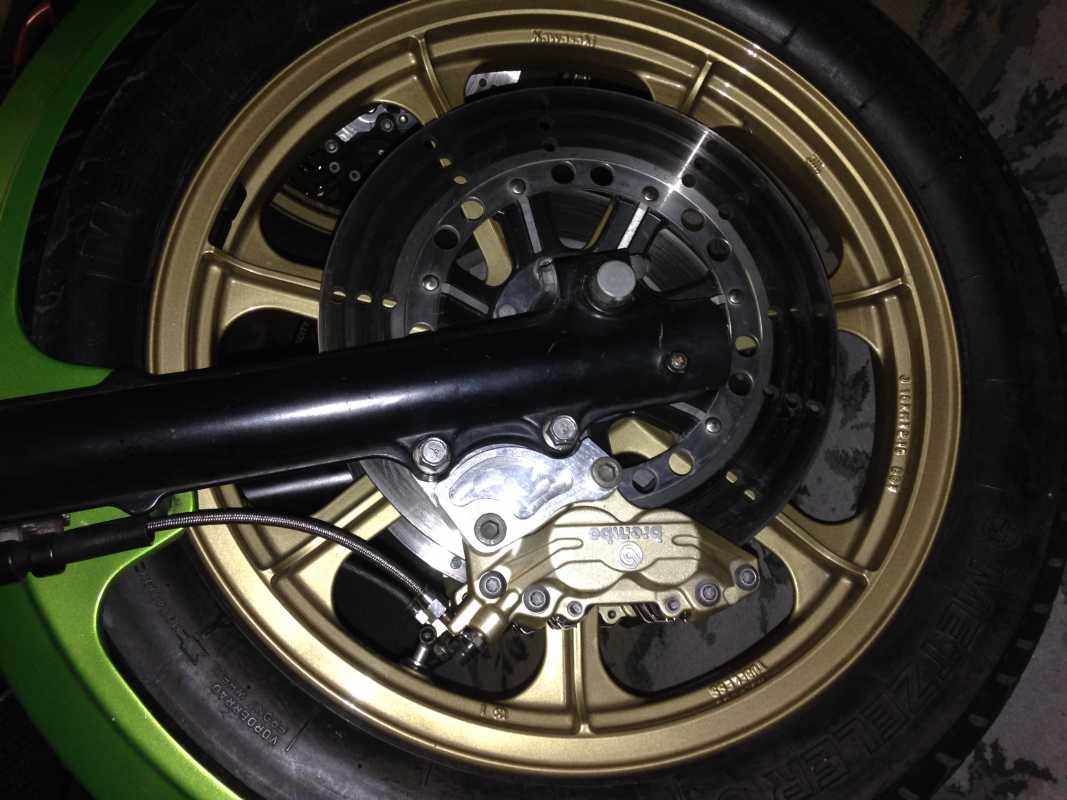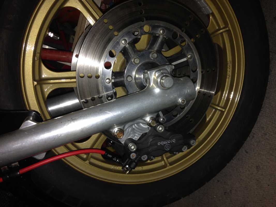 Here are the photos that Nikola sent me on his Brembo upgrade. Looks like some sort of custom adapter plate to mount the calipers. If info on them aren't readily available I could contact him and ask how he did it or where he got them