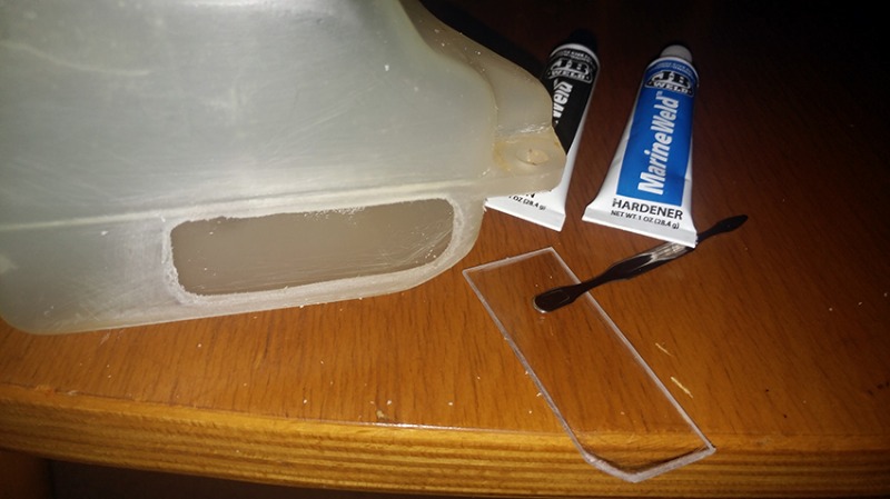 The coolant overflow tank fix. In retrospective, I'd replace a larger area and apply less JB Weld. It still looks fine and I will be able to actually see the level.