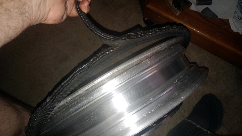 The sides of the tire are thinner and not as much reinforced as the rest, so I cut along the rim, close to it. Both sides, easy in 5 minutes.