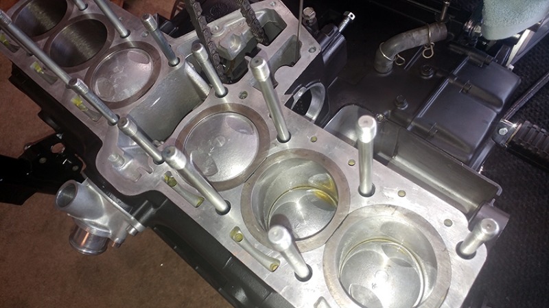 THING TO SPOT: it helped me a lot to have 3 strong plastic ties on each of the four furthest to the left and right engine studs. They really help lowering the cylinder block with control and prevent it at the same time from dropping.