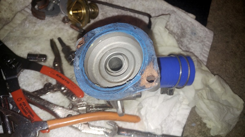 When I first installed the housing it was fine and just had a very small leak, droplets, from just one spot when cranking the engine. Now, with the 'new' method, I was literally pissing coolant all over my shiny exhaust pipes. So, my verdict is - I will not use grease and silicone on this gasket.