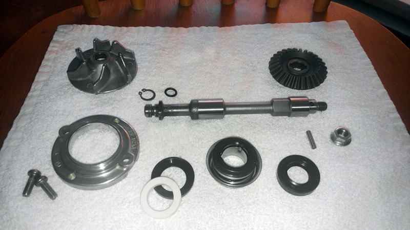 Today I sorted out the water pump assembly. The oil seal, the mechanical seal and the 0-ring are all new.