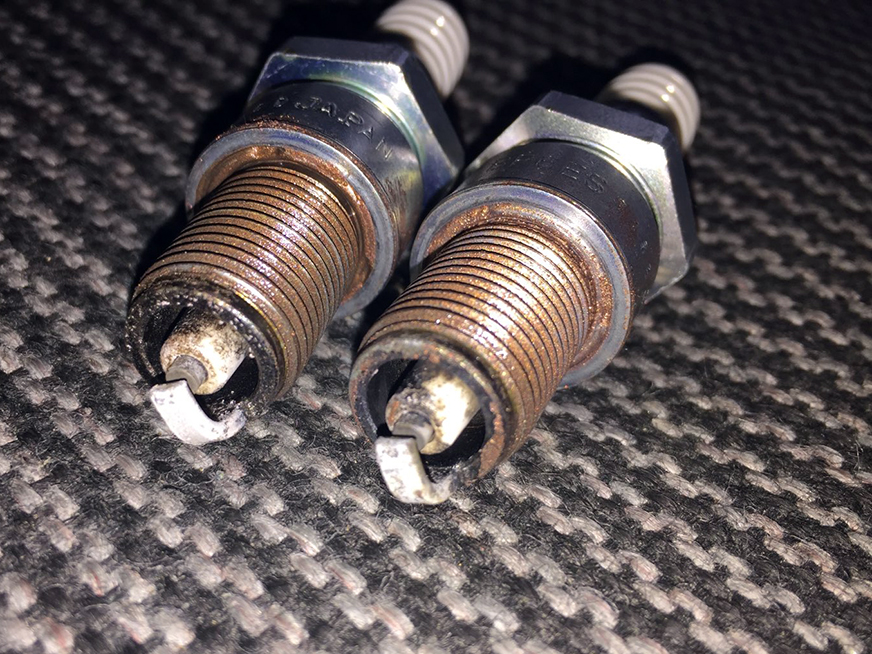 Pulled a few plugs and they all look pretty much like these after 300 km. Cleaned up and I'll see how they look later while the engine brakes in and everything, especially the piston rings, seals. I bet the blackinh oil residue from the fresh start, with initially plenty of engine assembly lube in the oil, will fade away. Is it a bit lean, what do you think?