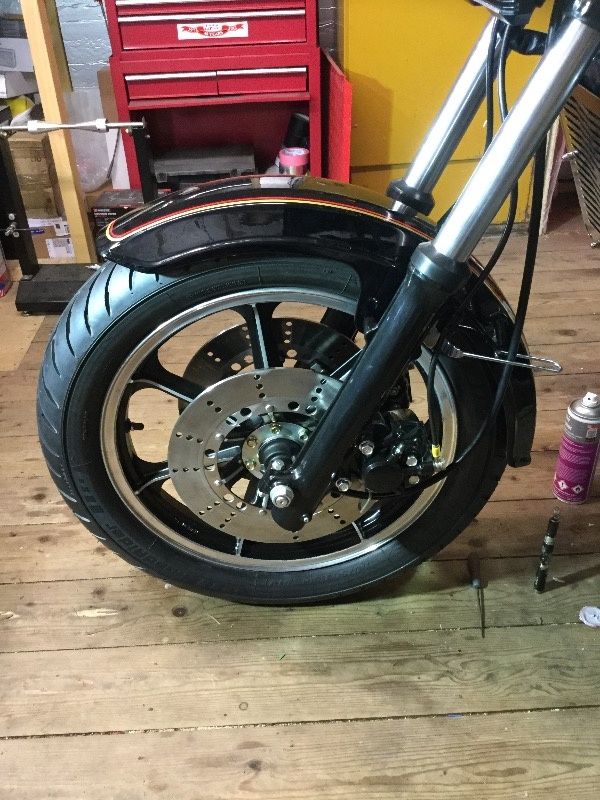 Fitted the front mudguard which was painted by a local guy whose done other bikes for me in the past. The tank is also painted but in the house keeping warm. Put fresh oil in the bike and managed to spin the engine over to get the oil around what has been a dry engine for the last six months. Not quite ready to try and start the bike as there appears to be be a few electrical gremlins which I need to look at another day.