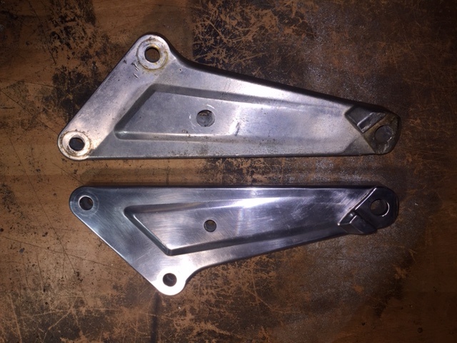 Once drilled and everything fitted, I took them off and polished them to see if they would come up as shiny as the new rear sets. They did! What a difference a little polishing makes!